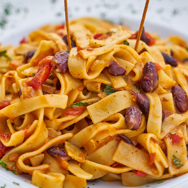 | Makaróni tészta paradicsomos, gombás, sonkás raguval,reszelt sajttal tálalva. | ||